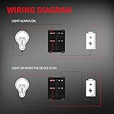 【30A Rocker Switch】 It's a Large Current Heavy Duty Rocker Switch, the Switch Rating is 30A 250VAC. So the switch can be used well on 3A, 6A, 10A, 15A, 16A, 20A, 25A, 30A at 120 Volt or 240 Volt. 【Red 120V Rocker Switch】 This lighted Rocker Switch with Red Lamp, The input voltage for the lamp of switch should be AC 110V to 250V. The Switch Lamp will light up to indicate the operating status of the device when the switch is turned ON. 【ON OFF DPST Switch】 It's a DPST 4 Pin ON OFF Rocker Switch, Double Pole Single Throw design, and T125 Temperature Degree(-25C to +125C). 【Installation】 The KCD2 KCD4 Rocker Switch fits for 30X22mm panel Cut-out size, very easy to install(Snap In flush mount version). 【Application】 It's widely used as Industrial & Scientific Toggle Switch, Fit for most kinds of household appliances such as water dispenser, treadmill, coffee pot and other electronic equipments.