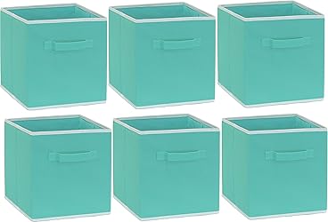 - Simple Houseware Foldable Cube Storage Bins, 11-Inch Turquoise, 6-Pack Fabric Cubes Organizer for Closet or Shelves