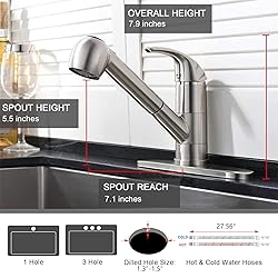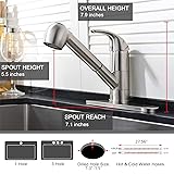 UFAUCET Kitchen Faucet with Pull Out Sprayer, Low Profile Stainless Steel Single Handle Brushed Nikcel Utility Laundry Sink Faucet 1 or 3 Hole Grifo De Cocina