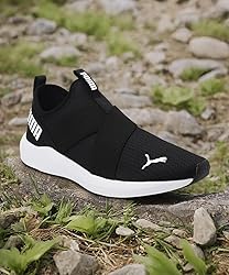 EASE OF USE: Features a slip-on construction for easy on/off. FLEXIBLE FIT: Easy, sock-like upper construction for enhanced comfort and flexibility. ENHANCED TECHNOLOGY: Utilizes PUMA's SoftFoam+, a step-in comfort sockliner designed to provide soft cushioning thanks to its extra thick heel. DYNAMIC AND STYLISH: Lightweight and flexible stylized cross-trainer. MADE FOR MOTION: Ideal for quick and agile movements.
