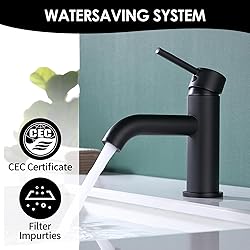 Water Efficiency: This CEC-certified faucet conserves water with a flow rate of just 1.2 GPM, without sacrificing performance—it functions reliably even under low water pressure. Superior Build Quality & Materials: The faucet is constructed stainless steel for exceptional corrosion resistance and long-lasting durability. Its reliable ceramic disc valves ensure smooth handle operation and prevent drips over time. The premium black finish is designed to resist tarnishing and maintain its appearance over time. Effortless Single-Handle Design: This faucet features a practical spout height of 3.9 inches and a reach of 6 inches, making it compatible with most sink sizes and configurations. The single-handle control allows you to adjust both water temperature and flow effortlessly with one hand, combining convenience with a clean, modern look. Safe for Your Family: Constructed from solid, lead-free 304 stainless steel for lasting durability. It is certified to NSF/ANSI 61, the strict standard for safe drinking water, making it an ideal and assured choice for households with children and pregnant women. Includes Premium Matching Drain: This stainless steel pop-up drain comes with a built-in hair catcher that effectively traps hair, soap residue, and debris. It prevents clogs in your plumbing for worry-free use and makes cleanup remarkably simple. Crafted from durable, matching stainless steel, it ensures both lasting performance and a cohesive look with your faucet. Installation&one or three holes mounting: This single-handle faucet can be installed in either a standard one-hole or a three-hole sink. A 4-inch decorative escutcheon plate is included to cover the outer holes in three-hole configurations. The required center hole diameter is 1.3 inches (33mm).
