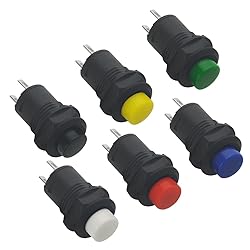 - Specification: Latching Switch: Press the button, power on; press it again, power off Material: plastic and metal Color: red, green, yellow, black, white, blue Quantity: 30pcs Diameter of Mounting Thread: 12mm/ 0.47inch Latching type push button switch with 2 terminals, panel mounting design, widely applied in home appliances, electronic equipment, automation equipment, communication equipment. Package Content: 5* Red Latching Push Button Switch 5* Green Latching Push Button Switch 5* Yellow Latching Push Button Switch 5* Black Latching Push Button Switch 5* White Latching Push Button Switch 5* Blue Latching Push Button Switch
