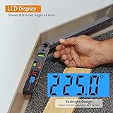 - Overview: This digital inclinometer protractor is high-accurate, with black aluminum design and Modern Appearance. An interior designer should have one! It is a digital angle measuring device whose read is easier and exact than other scale indicated angle level. It is mainly intended for applications which involve lineation for woodworkers, measure and definition of the exact angles such as trays, sloping roofs and handrails. What's more, It Also Can Be Used Like a Spirit Level, Helping You to Check and Calibrate (NOTE: It is NOT a Digital Level. Will Not Display a Number on LCD, Just Only Assist You to Judge If It Is Horizontal / Vertical or Not)Specifications: Length: 16 inch/ 400mm Increase/Decrease Angle: 0.1° Measuring Range: 0~225° Measuring Precision: ±0.5° Battery: 9V 6F22 Working Temperature: -10°C~+50°CFeatures: Easily Readable LCD Display With Horizontal and Vertical Bubble Level Data Holding Function to Keep the Angle Value Backlight Design to Keep Its Normal Use on Dark Light Automatically Shut Off after 5 Minutes to Prolong the Batteries' Life Accurate measurement-- Angle Range is 0-225°, Measuring precision: ±0.5°, Increase/Decrease Angle: 0.1°Package Included: 1 x Angle Finder Protractor 1 x Portable Bag 1 x 9V 6F22 Battery 1 x User Manual
