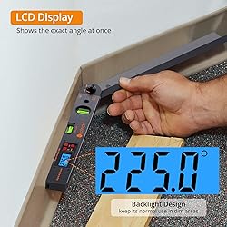 【Digital Angle Finder Protractor】 with High Accuracy, Delicate Design and Modern Appearance, An Interior Designer Should Have! 【High Accuracy】 Angle Range is 0-225°, Measuring precision: ±0.5°, Increase/Decrease Angle: 0.1° 【Data Hold】If You Want to Use Data Holding Function, You Need to Press the HOLD Button in Red rather than Twist the Knob. (The Knob is Just for Loosening and Tightening. It Can't Hold the Angle Firm Completely!) 【Backlit LCD Display】 Come with Backlit LED Display Which Makes it Possible to Read the Data Clearly, Even under a Low Light Circumstance 【With Horizontal and Vertical Bubble Level】 It Also Can Be Used Like a Spirit Level, Helping You to Check and Calibrate (NOTE: It is NOT a Digital Level. Will Not Display a Number on LCD, Just Only Assist You to Judge If It Is Horizontal / Vertical or Not)