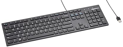 KEYBOARD: The keyboard has hot keys that enable easy access to Media, My Computer, Mute, Volume up/down, and Calculator EASY SETUP: Experience simple installation with the USB wired connection VERSATILE COMPATIBILITY: This keyboard is designed to work with multiple Windows versions, including Vista, 7, 8, 10 offering broad compatibility across devices. SLEEK DESIGN: The elegant black color of the wired keyboard complements your tech and decor, adding a stylish and cohesive look to any setup without sacrificing function. FULL-SIZED CONVENIENCE: The standard QWERTY layout of this keyboard set offers a familiar typing experience, ideal for both professional tasks and personal use.