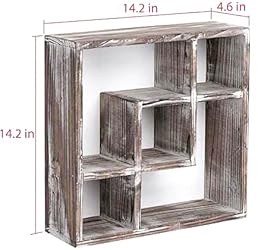 - Rustic wood included whitewashing shelves that make your place cozy and neat. Especially, the part of the whitewashed looks more vintage and stylish. Regarding the functional part of the shelf, it is very easy and quick to display or place small goods on 5 compartments on the shelves. For example, there could be small plants, toys, air fresheners, key, antique collections and more in your living room. The square shape makes them well-arranged and easy to install to any wall of your room. In addition, it has multipurpose use as a practical case for bedroom kitchen and bathroom. Regarding Brown rustic wall shelves with attractive design, it is the practical case for decorative all goods and also suits any place like kitchen, living room, bedroom and more. Also, the features as vintage antique style included whitewashing and torched makes your place cozy and warm. Plus small dust or scratched-marks on the shelf could be hidden very well and look like some of the vintages (size: 14.2W x 4.6H x 14.2H)