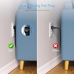 Compact and space-saving: Power strip cube saves space and can be easily mounted on desktops, under tables, or on walls using screws or adhesive (included). Ideal for charging devices in offices, living rooms, bedside tables, hotels, cruise ships, and more. 7-in-1 Power Strip with USB Ports: 3 outlets extender with 3 USB-A Ports and 1 USB-C PD 20W port to make full use of this power strip, charge multiple devices at once. USB C Fast Charge: Our USB-C charging port supports PD3.0, maximum output is 20W and features fast charge with output: 5V/3A or 9V/2.22A or 12V/1.67A; each USB A port features 2.4A Max output. Built in smart technology, detecting charging devices and deliver optimal charging speed automatically, compatible with most type c devices. Widely Spaced Outlets & 45 Degree Flat Plug Fit for Narrow Space: 3 widely spaced outlets on different directions and 45 degree flat plug won't to take up any space and fit the narrow space. Your safety guard: featured with overvoltage, short circuit, overload, over current protection, and FCC authentication.
