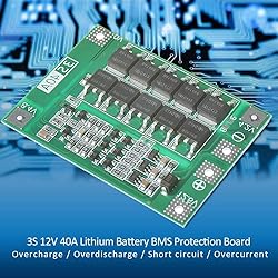 - Description: Specifications: Charging voltage:12.6v ~ 13.6v Over Charge voltage:4.25±0.05v Over Discharge voltage: 2.5v±0.05v Continuous discharge current (upper limit): 40A (if the cooling environment is not good, please reduce the load current ) Continuous charge current (upper limit): 20A Internal resistance: Less than 100mΩ Working temperature:-40 ~ +50Celsius Storage Temperature:-40 ~ +80Celsius Weight: 8.8g Size:41 mm×55 mm×3.4mm/ 1.61″ ×2.17″×0.13″ Detailed electrical parameters are shown in the picture Suitable for: 1.Suitable for lithium batteries with nominal voltage of 3.7V and full voltage of 4.2V (including 18650, 26650, polymer lithium batteries, no size limit) 2.Suitable for electric drill with starting current below 80A and power below 130W . Attention: To successful starting the drill requires three 15C-20C power batteries, or six 10C-15C power batteries (ordinary 18650 battery cannot start the drill!! Recommended power battery models:for VTC4, VTC4A, VTC5A, and VTC6). 0V and 12.6V cable, use copper wire of more than 3 square millimeters (cannot use nickel plate!!!). Strictly according to the diagram wiring: 0V/4.2V/8.4V/12.6V,Otherwise it will cause damage to the chip. Do not mix the good battery and poor battery to use. The internal resistance of 3 battery capacity are closer will be better. Package included: 2 x 3S 40A lithium Battery Protection Board 1 x 14AWG 50cm/19.6inch Power Wire