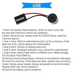 Use: Power on the computer, we will hear the familiar sound of "beep" a sound, generally indicating that the computer can be used normally, the sound is emitted from the "baby." Red line is positive, black line is negative (in fact, regardless of the positive and negative, as long as the interface connected to the Speaker can be used) Continuous sound (long beeps): memory is not seated or damaged. Re-insert the memory, if that does not work, replace only a memory. It kept ringing: power supply, display and graphics card connected. Repeat short ring: Power problems.
