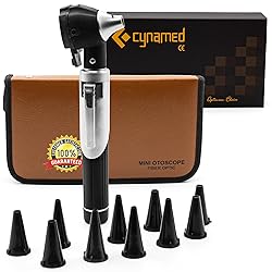 - Be prepared for all of your kids ear-mergencies and diagnostic needs with this Cynamed Otoscope Set. One of the best otoscopes on the market right now. Same quality as other leading brands (Dr Mom Otoscope, Welch Allyn Otoscope) at a fraction of the price! Stop wasting tons of money on unreliable otoscopes that either don’t work or are difficult to use. This ear light otoscope is extremely durable and specifically designed with a full size handle that is powered by 2 AA cell batteries that will last and last. This set includes otoscope with bright fiber optic bulb, 10 disposable specula 1 extra replacement bulb and protective nylon case.