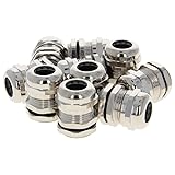 Fielect 10Pcs Metal Waterproof M20 Cable Glands Joints Adjustable Connector Silver for 6-12mm Dia Cable