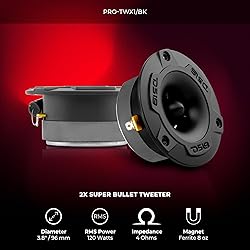 Midrange that handles it all - a mid-range driver that can answer the call to handle the most significant part of the audible sound spectrum. A speaker that sounds great with just instrumentals and, even better with vocals. Power you can count on - The PRO-X8. 4BMPK delivers an impressive 550W max power with 275W RMS at 4 ohms, enough to tackle a full range of audio. Top of the line tweeters - Profnciesessional Grade Super tweeters that can handle high freque with ease. DS18 meticulously designed these tweeters to sound as good as they look. Power you can count Power you can count on - PRO-TW220 ferrite tweeter delivers out-of-this-world power, at 225 watts RMS and 350 watts max at 4 ohms with build in capacitor filter. on - PRO-TW220 ferrite tweeter delivers out-of-this-world power, at 225 watts RMS and 350 watts max at 4 ohms with build in capacitor filter. Take your system to the next level - get the most out of your system by upgrading to a super tweeter that gives you everything you're missing from your stock stereo. Discover what a high-end tweeter can do for you.