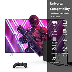 Senetem Cat 7 Ethernet Cable offers performance of up to 600MHz and data speed up to 10Gbps per second; guarantees high-speed data transfer for server applications, cloud computing, and HD video streaming. Made of 4 shielded twisted pairs (STP) of copper wire with gold plated contact pins in each RJ45 Connector. This provides great resistance to crosstalk, noise, and interference. Senetem high-speed Cat7 Ethernet cable works well with all RJ45 connector devices. Compatible with iMac Pro, PS3, PS4, PS4 Pro, Raspberry Pi 4, Router, WiFi extender, Switch, Smart TV, Xbox, Xbox One, Sky Q box, video game consoles, TV decoder, BT Smart Hub, Virgin modem, Patch Panel, PCs, Network printers, media players, TV box, NAS, VoIP phones, etc. Flat cable design is more convenient for installation and use.You can easily and seamlessly make the cable run along walls, follow edges&corners or even make it completely invisible by sliding it under a carpet. Senetem Ethernet cable is backed with 18 months worry-free warranty and professional customer support.