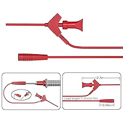 Replaceable: Replaceable probes set has 4pcs 1mm gold-plated sharp needles and 4pcs 2mm copper needles. They can be switched to meet your different testing needs and ensure high strength, conductivity, long life and accurate data. Voltage: 1000V. Current: 20A. Test Hooks: Test hook clip has a retractable clip hook and an extension lead which provides safe and secure connections for clamp and any terminal block. The front end of the hook is retractable with a spring, so objects can be firmly hooked. Suitable for continuity testing of circuit board components, resistors, logical analyzer capacitors or other SMD components. Test Tweezer: Test leads set also contains a test tweezer. Suitable for resistor, capacitors and other SMD components. Non-slip comfort grip, it is convenient to use with one-handed operation of multi-function testing. Length: 15.3cm/6inch. Wide Use: 21PCS multimeter test leads kit works well with any multimeter and test instrument. Replaceable needles, banana plug adapters, alligator clips, SMD IC test hook clips and test tweezer can help expand testing capability and flexibility. Package include: 2PCS Multimeter Leads, 8PCS Replaceable Needles, 2PCS 4mm Banana Plug Connectors, 2PCS U-Type Adapters, 2PCS Heavy Duty Alligator Clips, 2PCS SMD IC test hook clips with extension leads, 2PCS Safety Caps, 1PC Test Probe Tweezer.