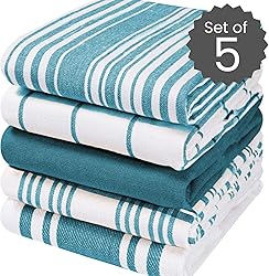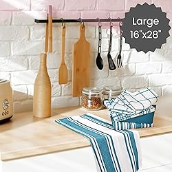 ABSORBENT & DURABLE: These kitchen dish towels are made of 100% cotton, they are super absorbent for quick clean-up of spills and very durable for using over and over without losing effectiveness. Great replacement for sponges and paper towels! SOFT & DRY QUICKLY: Our dish towels are not only soft enough to be gentle on your hand and your delicate kitchenware, but they can dry quickly overnight for next continued use and smell fresh in your kitchen. GENEROUS 5-PACK ASSORTED DESIGNS: Give your kitchen a glow-up with these 16”x28” premium quality set of 5 kitchen towels! With their 100% ring spun cotton material, these towels are perfect for drying dishes, surfaces, and hands. ENVIRONMENTALLY FRIENDLY: Aside from looking good as new even after multiple washes, these dish towels are great for soaking up spills and cleaning surfaces, making them a great alternative to paper towels. EASY CARE & FAST DRY: Machine washable and safe to dry, recommended to wash before first use, do not use bleach or fabric softeners, tumble dry low, do not iron.