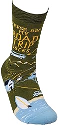 GREAT FOR GIFTING: Colorful woven socks make great gifts! CLEVER DESIGNS: Socks feature clever design and sentiment. ONE SIZE FITS MOST: Socks are made of stretchy cotton, nylon, and spandex blend so one size fits most. SENTIMENT READS: These Are My Road Trip Socks DESIGNED IN THE USA: Proudly designed in the USA.