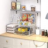 2 Pack Storage Basket Bin for easy access in limit space and stackable design. No drill, no power tools needed. Just assemble the baskets and save more space Hold lots stuff. Great in Laundry room, kitchen and storage room organization. Sturdy Metal construction with elegant White paint Dimension of One Unit: 13.2"D x 17.25"W x 8.8"H; Patent Pending