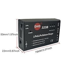 - Description: Brand Name: DHD Item Name: 323B Input Voltage: DC 12V 2A Charging Power: 20W (max) Charging Current:0.5A/1.2A/2A optional Balance Current: 200mA Balance Accuracy: 10mV Dimension: 77x50x22mm Weight: 78g Single Cell Cut-off Voltage: 3.6V (LiFe), 4.2V (LiPo) for 2S/3S LiPo,LiFe Battery adapter: Input:AC100V-240V Output:DC12V2A for 323B Package Included: 1x DHD 323B Balance Charger 1x 12V2A adapter Note: Battery and cables are not included. Never leave the battery when charging. Do not allow both batteries to be charged at the same time. Notes for charger use: 1- Correctly select the input voltage of the charger. The working voltage suggested in the manual for DC charger is less than the specified voltage, which may cause the charger not to work or fail. 2- Choose the right type of battery. The wrong type of battery can cause a fire. 3- After charging, please remove the battery and disconnect the power supply. 4- When charging, especially for a long time, someone must watch over it. 5- The charger shall not be used for a long time. It shall be placed in a dry, ventilated and waterproof place. When it is used again, it shall be electrified for a few minutes and then connected to the battery for charging.