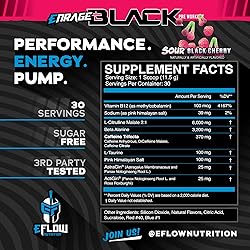 eFlow Nutrition Enrage Black High Stimulant Pre Workout Supplement - Preworkout Powder to Boost Energy, Pumps and Strength - 4 Flavors (30 Servings) (Sour Black Cherry)