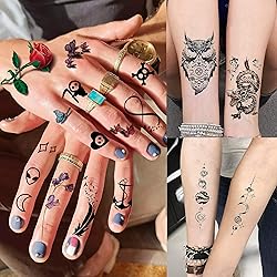 🍷66 Sheets 430+ PCS Cute Temporary Tattoos Sticker Fashion Designs🍸 EGMBGM Brand Original 3D Multicolor Animals Unicorn Flower Rose Butterfly Dragon Wolf Owl Deer Elk Tiger Lion Dreamcatcher Whale Feather Lips Birds Outer Space Planets Star Tattos Moon Sun Heart Crown Goldfish Anchor Gothic Pirate Inspirational Words Quotes Scorpion infinity Cross Funny Panda Cat Spider Temporary Tattoos For Women. There Are 66 Sheets 10.5x6CM 4.1"x2.3" Fun Small Temporary Tattoos For Adults In Each Package. 🍷Healthy Nontoxic Tattoos🍸 NON-TOXIC Ink Semi Permanent Temporary Tattoos For Kids Boys Girls Children Daughters Son. Temp Tattoos Stickers are Safe To Apply On Face, Arm, Ear, Neck, Fingers, Chest, Arm, Breast, Shoulder, Back, Shank, Boobs, Underboobs, Waist, Wrist, Thigh, Forearm, Tiny Finger Tattoos Hands, Leg, Cholo, Ankle, Foots And Any Part Of Body Skin Fake Jewelrys Baubale Gadgets. 🍷Easy Application And Long Lasting🍸 Water Transfer Tattoos Paste Fake Jewels Is Easy To Use. To Apply Variety Tattoos Temporary On Skin By Wet It With Water And Wait For 20-30 Second. Waterproof Tatoos Painting Are Disposable Durable And Long Lasting Tattoo On Body For 4-7 Days But Washable Very Easy To Remove By Rub It With Makeup Remover Oil Or Alcohol. 🍷No Pain To Have Bulk Realistic Tattoos Sets🍸 Fake Tattoos For Women Looks Real and Cause No Pain And Won't Leave Any Scars. Even No Worry To Apply On Baby, Child, Toddler, Children, Teens, Teenagers, Lovers, Youth, Temporal Tattoos For Men Teens Tattoo Paper. Zombie Chucky Makeup kit set, Tatuajes Temporales Women Men Adult Kids autocolante. 🍷For All Seasons And Events🍸 Fashion 3D DIY Custom Black Temporary Tattoo Kits Provide You Lots Of Body Art Halloween Makeup Kit Decals From Winter To Summer Style, For Any Party Favor Sipplies, Gym, Beach, Club, Cosplay Costume, Prank, Bachelorette, Day Of The Dead, Easter, Tumblers Cups, Cutout, Clip Art, Festival Tattoos, Birthday, Fun, Phone Case, Rave Accessories, Masquerade, Home Decoration, Ornament, Crafts, Cups, Bottle, Fridge, Closet, illustration, Clipart, Stereo, Biker Decor, Car.