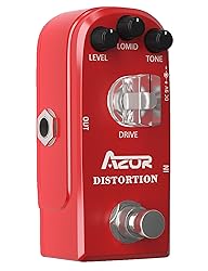 - AZOR vintage Distortion Electric Guitar Effects Pedal Mini Single Type DC 9V with True Bypass Classical Electronic Pedal Aluminium-alloy Red AZOR Distortion pedal has been developed to give that classic vintage distortion sound. The 4 knob configuration gives you all the tone options needed to reproduce vintage distortion sound and that identifiable classic rock distortion. The 4 controls are: Level, Drive, Tone and Lomid. The desired combination can produce a wide and dynamic sound from just above overdrive to a crunchy distortion with lots of low dirt when required Features: Small and exquisite appearance, it is convenient to carry. With Level, Tone, Drive and Lomld control knobs for you to achieve the charm of distortion. True bypass footswitch for switching between distortion effect and bypass status. With LED light for indicating effects or bypass status. Different sound effects give you a variety of your dream sounds. It is easy to operate, suitable for electric guitar. Specifications: Input: 1/4” monaural jack (impedance: 470k Ohms) Output: 1/4” monaural jack (impedance: 1k Ohms) Power Requirements: AC adapter 9V DC (center minus plug) Current Draw: 3 mA Precautions: 1.Do not use the pedal in high temperature, high humidity, or subzero environments 2.Do not use the pedal in the direct sunlight. 3·Please do not dissemble the pedal by yourself.