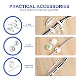 SET OF 3 DIFFERENT SIZES - Large(16.0" x 6.2" x 5.4"), Medium(12.6" x 5.3" x 5.1") and Small(9.0" x 4.3" x 4.7"). Store all the outlet apparatuses including multiple power strips, cords, adapters,splitters, etc. Large: Fits Power Strip with 10-12 Outlet & USB. Medium: Fits Power Strip with 6-8 Outlet & USB. Small: Fits Power Strip with 2-4 Outlet and USB ACCESSORIES UPGRADE - Our cable management boxes are equipped with 28 pcs cable management set that concludes 6 x One Slot Cable Clip Holders,2 x Triple Slot Cable Clip Holders,2 x Six Slot Cable Clips Holders ,2 x Triple Slot Cord Clips ,6 x One Slot Cord Clips,10 x Reusable Cable Ties.That help you even better organize your cables or wires. MANAGEMENT & VENTILATION SYSTEM - the sides have a large opening at each end to allow for the power chords to fit in the box then exit to the power connections in wall and equipment providing plenty of cooling. KIDS & PETS FRIENDLY - Clasp design to protect kids and pets from the power strips and other electrical equipment. ELECTRICALLY INSULATED - Material is stronger and more impact resistant than other plastics, which allow you to safely manage and customize your cable wire cord plug organization or clean-up effort.