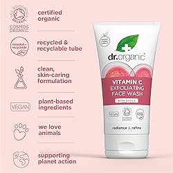 Dr. Organic Vitamin C Exfoliating Face Wash | Illuminating & Brightening for Dry Skin, Rich in Vitamin C, Certified Organic, Paraben & SLS-Free, Cruelty-Free, Natural, Vegan, 150 mL / 5 fl oz