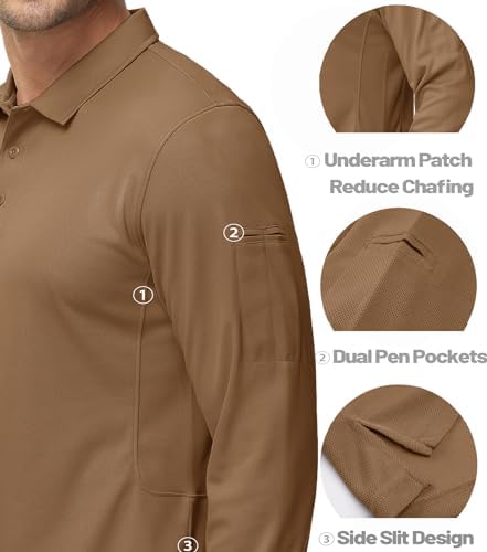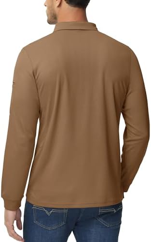 MAGCOMSEN Men's Polo Shirts 3 Button Quick Dry Performance Long Sleeve Tactical Shirts Pique Jersey Golf Shirt