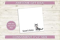 - Fun, unique, and personalized sticky notes! Made just for you with custom text and a husky dog design. Sticky notes measure 3"x3" in size and come with 50 sheets per pad. These make wonderful gifts for teachers, friends, coworkers, or a way to add some fun to your own desk! Your customization preview is not an exact display of how text will appear. Sizing will be adjusted by a professional to ensure proper fit and style. Each pad is made to order with your customization so please allow approximately two weeks to receive your order. Thanks!