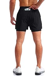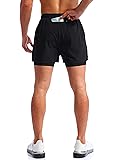 HIGH PERFORMANCE: Upgraded fabric offer a lightweight, breathable and soft touch which more comfortable and move-freely. FUNCTION POCKETS: Phone pocket design to prevent that out slipping, keep free movement. back zipper pocket securely stash cash, keys, cards, keep your hands free during activities. CHAFE FREE PROTECTION: 2 in 1 designed with lightweight outer layer and breathable lining. Compression short support the private protection, reduce the risk of bruising and protect your legs during activities. ELASTIC WAISTBAND: Gym shorts with elastic waistband constructed, internal draw cord for a personalized fit, easy to adjust and firm support. VERSATILE SUITABLE FOR: Pudolla men's workout running shorts geared for indoor and outdoor wear, running, training, athletic, fitness, hiking and other training activities.