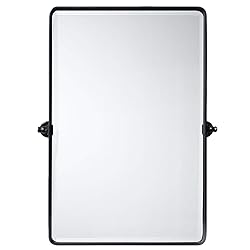 Practical yet Beautiful Design: One of our best-selling rectangle pivot vintage bathroom mirror collection! Framed in metal for unrivaeld strength. Tilting up or down to adjust viewing angle for either standing or seated mirror use. Also this pivoting mirror is coming with an elegant and generous 3/4'' bevel. An easy fit in your bathroom aesthetics no matter it's Chic Modern or Rustic Farmhouse. Dimension: Overall (Includes Pivot Grommets): 26.91" wide x 3" deep x 35" high, Excludes Tilot Gromments: 23" wide by 35" high, Mirror is elegantly beveled in a classic rectangle design. Sturdy Wall Brackets: This black rectangle edge tilt vanity mirror comes with adjustable wall brackets , each bracket is premium quality zinc alloy material, which is extremely durable and safe, avoid loosening, slipping or rust found in some other cheaper brands. Simple Assembly: Mounting hardware, instrcutions and scews & anchors included. Hardware Replacement: Customers are elegible for hardware replacement if this mirorr arrives missing, defective or damaged brackets. 100% happy warantee.