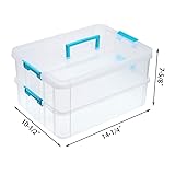 JUXYES 2-Tiers Stack Carry Storage Box With Handle, Transparent Stackable Storage Bin With Handle Lid Latching Storage Container for School & Office Supplies (Blue)
