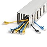 PROFESSIONALLY ORGANIZE & ROUTE CABLES: Cable management raceway w/parallel slots protects up to 200 cables, top access to add/remove cables, route them in office/server room, install using screw holes INDUSTRIAL STRENGTH: Sturdy warp-proof, self extinguishing PVC, solid network/power cable hider/concealer is M1 rated NF fire resistant w/186F Vicat softening point; UL 94V-0 Rated; UL/CSA approved FLEXIBLE DESIGN: Easily add or remove cables to your cable run with the simple cover latch mechanism / route cables in and out of the raceway using the slotted holes TECHNICAL SPECIFICATIONS: Length: 6.5ft (2m) | Height: 3" (75mm) | Width: 3" (75mm) | Slot Width: 0.3" (8mm) | Max Cable Capacity: 200 | Vicat Softening Point: 186F/86C (Tested to 50C) | Gray | RoHS