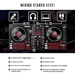 Complete Serato DJ System – DJ Controller for Serato DJ Lite (Included) with 4 decks of control, built-in 24-bit audio interface and plug and play USB connectivity for Mac and PC Visualize Your DJ Mix - Large 6-inch capacitive-touch jog wheels with high-resolution color displays that show beats per minute (BPM), platter position, time remaining and pitch adjustment / key Personalize your DJ Set - Six Fun, quick-launch FX with dual paddle triggers; dedicated instant loop controls; eight performance pads per deck to access cues, loops, fader cuts and samples Stream Millions of Tracks – Browse and stream everything from the freshest underground sounds to certified classics directly in Serato DJ Lite from leading providers including SoundCloud and TIDAL SoundSwitch Micro DMX Interface - Simplify Your DJ Lighting Setup – Dedicated USB to DMX XLR interface for SoundSwitch Lighting Software with support of one DMX universe; compatible with Serato DJ