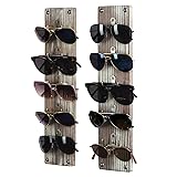J JACKCUBE DESIGN Rustic Wood Wall Mounted Sunglasses Storage Organizer 10 Eyeglasses Holder Display Rack Set of 2 with 5 Metal Hooks on Each Holder -MK691A