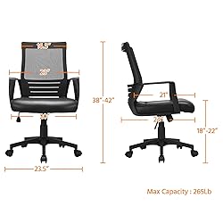 【Mesh & Leather Combination】The match of mesh and PU Leather is the highlight of this rolling desk chair. Smooth faux leather upholstery brings exceptional comfort and understated elegance, while the breathable mesh back keeps you naturally cool even after prolonged use. An ideal addition to the home office, computer workstation or study room. 【Comfortable & Sturdy】With its generous 20’’ (W) x 21’’ (D) seat and high-density foam cushion, this modern desk chair provides great cushioned support to reduce seating muscle fatigue. Capable of up to 265lb with SGS-certified gas lift, quality nylon base and non-marking swivel casters. 【Ergonomic Office Chair】Curved backrest perfectly fits the human body and adapts to the spine’s natural curve, alleviating back tension and discomfort during long office/meeting/studying sessions. This computer chair has a rocking function and can be adjusted from 18’’ to 22’’ in seat height to match various sitting positions. 【Tilt Tension Knob】Back tilt tension is easy to control, and you can choose to tighten or release the tilt-tension by turning the knob beneath the seat while rocking back and forth. 【360° Smooth Mobility】Twisting and turning about is integral within the office. So this ergonomic swivel chair adopts a 23.5’’ wide star base and comes with 5pcs 360-degree swivel wheels, ensuring fluent and quick movement from one task to another without scratching the wooden floor.