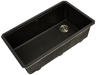 GRANITE KITCHEN SINK made from durable quartz composite that offers the elegant look of natural granite with resistance to scratches and shock – WORKSTATION SINK with integrated ledge for sliding accessories allows you to clean right over the kitchen sink OUTER SINK DIMENSIONS: 32 in. L x 19 in. W x 10 in. D – BOWL DIMENSIONS: 30 in. L x 16 in. W x 9 3/8 in. D – Minimum Cabinet Size: 36 in. – KIT INCLUDES: Workstation sink, heavy-duty cutting board, roll-up dish drying rack, drain assembly with strainer ADVANCED QUARTZ COMPOSITE offers the look and feel of granite with resistance to impact and thermal shock on the white kitchen sink – HEAT SAFE up to 500°F: Stands up to chipping, hot plates, and cookware UNDERMOUNT DESIGN creates a seamless transition from countertop to sink for a contemporary look and easy cleaning – SPACIOUS SINGLE BOWL: High-capacity kitchen sink with rear off-set drain creates an uninterrupted surface with generous workspace PERFECT DRAINAGE: Rear-set drain opening and gently sloped sink base help prevent water from pooling in the sink – Optimized slope helps keep fragile glassware from tipping