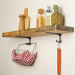 - Rustic Floating Shelf Bracket 8 Inch, Cast Iron Shelf Brackets for Wall Shelving, Heavy Duty Shelf Bracket Supports, Decorative Shelves Brackets With Hooks, 4 Pack Vintage decorative metal brackets and functional shelf supports for you. Adding charm to your farmhouse. Product Information: Size: 8inch depth, 3-3/8inch height, 2-5/8inch hook width(right-angle hook) Weight -- 3.13lbs(1.42kg) Package Includes: 4 x Shelf Bracket 16 x Long Screw 8 x Short Screw 16 x Plastic Anchor Product Features: Solid cast iron material, more durable. With a right-angle hook to hang small items. Delicate matte black finish, very easy to install. Ideal for holding planks, raw edge wood, board and more. Suitable for DIY open shelving of home, office, farmhouse and more. Suggestions About Wood/Board: Recommended wood panel/board size: 8-12 inches in depth, more than 1 inches in thickness. You can decide the wood panel/board length and the quantity of brackets installed based on your needs. And you can also use your own screws and anchors when needed. How To Install? You may need a power drill, cross screwdriver and hammer to install the brackets. Such tools are not included, please prepare them before installation. 1), level the brackets very carefully on your wall, mark on the location with a pen and then drill holes. 2), punch the plastic anchors into the holes with a hammer, then use a cross screwdriver to tighten the 16 long screws first to make the brackets align on your wall. 3), put your wood panel/board in place on the brackets, then tighten the rest 8 short screws under the wood panel/board. 4), put your books or any other items you like on the shelf. Done.