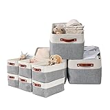 DECOMOMO Foldable Storage Bin (LARGE-Grey and White 15 x 11 x 9.5" - 3 Pack and Small 11.8 x 8 x 6-6 Pack) Collapsible Sturdy Cationic Fabric Storage Basket Cube W/Handles for Organizing Shelf Nurse