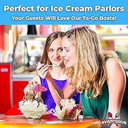 - Have fun making special banana split creations with our unique, eco-friendly boats that are super durable and fun!No party is complete without our amazing banana split boats that kids and adults will love. Create fantastic creations and get crazy with the toppings. The limit is your imagination! The ultimate accessory for childrens' birthday partiesIf you need to feed AND entertain a crowd of kids, look no further. Our 50-count supply ice cream cups will have kids designing their ultimate dessert and having a blast. Your kid's ice cream bar birthday will be the school highlight of the year! Perfect for bringing people togetherIce cream socials are a great way to get together and enjoy one of life's simple pleasures. Get together with your family, church group, or school group and catch up over some delicious snacks. A great choice for any businessConcession stands, cafes, restaurants, ice cream parlors, carnival and fair vendors and bakeries can all benefit from the fun, nostalgic presentation of our banana split boats. You create a great impression in your customers' minds when you serve a delicious dessert to go in our durable ice cream trays! What’s in the Box?A set of 25 (twenty-five) 8-ounce clear, plastic banana split boats, plus a set of 25 (twenty-five) 12-ounce boats. Each 8 oz. boat measures 8 In. x 4 In. x 1.25 In. Each 12 oz. boat measures 9 In. x 4.5 In. x 1.75 In.These banana split boats do not have a locking mechanism. While smaller boats can be used as lids to help minimize mess, they are not designed to snap or seal in place. These are intended for single-use serving. Satisfaction Assured for Life!If you aren’t completely satisfied with your order, simply email us, and we will respond within 24 hours to make it right even on the weekends. We absolutely assure your satisfaction!