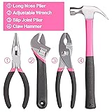 [Pink Tool Kit for Women]-The hand tool set included carp pliers, needle nose pliers, allen wrench, adjustable wrench, claw hammer, ratchet screwdriver & extension rod, electric screwdriver & bits, tape measure, utility knife & blades, cable ties. [3.6V Electric Screwdriver]-3.6v rotatable electric screwdriver, can be rotated forwards and backwards, with LED searchlight, and adapts to a Micro-USB charging cable, help you to assemble furniture rapidly. [Home DIY Tool Set]-The tools in the tool kit can be widely used in most DIY and home maintenance scenarios,While the round bag ensures the safety and cleanliness of the tools and is easy to storage and carry. [Perfect Gift for Ladies]-Pink and beautiful toolbox is a practical gift idea, useful and necessary equipment, especially for ladies who like manual operation, this is an intimate gift can be used for birthday, Easter, Congratulations, Christmas, graduation, etc. [Tools are Highly Robust]-A large number of tools are ergonomically designed and more comfortable in use. All tools have reached quality standards to ensure that no damage will occur during use.