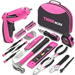 - ABOUT THIS LADY'S TOOL KIT For the apartment, household, or new homeowners that need to get things fixed quickly and easily. All are carried in a toolset. 1. Essential hand tools and accessories to hammer, tighten, cut, and more 2. Install fixtures and fittings, hanging frames, and assemble furniture 3. Finish screw-driving & DIY jobs with its pink set of most reached-for repair tools this THINKWORK tool kit is equipped with 122-piece home repair tools. Most of the tools are made out of high-quality steel and are finished in chrome to ensure durability and strength and for the tools to have anti-corrosion protection.