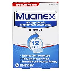 - Designed to loosen phlegm, thins bronchial secretions for more productive coughs and relieves chest congestion. Acts quickly, and effective for 12 hours from single dose. Active ingredient (per tablet) includes guaifenesin (1200 mg).