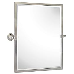 TEHOME Pivot Mirror Brushed Nickel Tilt Rectangle Bathroom Mirror Tilting Metal Framed Beveled Vanity Mirrors, Overall 23.9 x 24 inches (Mirrror 20 x 24 inches)