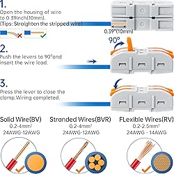 Safety and reliability: GKEEMARS wire splicing connector is made from insulated material, which is flame-retardant, corrosion resistance, aging resistance, high pressure resistance, long service life. It can prevent electrical leakage, safe and reliable. Product features: GKEEMARS lever wire connector instead of traditional electrical tape and electrical butt connectors twist-type, technological innovation reduces wiring time by 70%. Make connections cleaner and space-efficient with low maintenance. Compatibility: GKEEMARS electrical connector for joining braided and solid wire and wires of differing sizes. Suitable for wire size 0.2-4mm²/AWG24-12. Practical and reusable: GKEEMARS lever wire kit can be used for motor, electrical control, power supply, home appliance, lighting, machinery and other wire connection parts. Every junction independent shrapnel, different wire managed separately, improving safety performance and product quality. Package content: 50 X SPL-1 DIY Splicing Connectors.