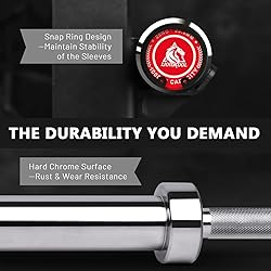 Incredible Value: Our goal is to design a best home gym Olympic barbell at an affordable price. Precision-engineered high-grade steel (150,000 PSI tensile strength) supports 1000LBS capacity. We enhanced the hardening process of steel and surface treatment to it stronger for repeated use. Hard chrome finish ensures unmatched oxidation/wear resistance. Smooth 2” sleeves for easy, quiet plate loading. Ultra-Smooth Spin: Needle bearing and bushing hybrid Olympic bar delivers effortless rotation with zero maintenance. Snap-ring design guarantees lifelong stability. Optimal Grip & Control: 1.5mm medium-depth diamond knurling with flattened top for a secure and non-slip grip while not being too aggressive. Features dual knurl marks for correct hand positions in both Olympic weightlifting and heavier powerlifting. Pro-Grade Specs: 86.6” length, 20 kg (~44 lb) weight. 28.5mm grip diameter, 51” shaft, and 16.5” sleeves compatible with all Olympic weight plates. All-Level Versatility: Multi-purpose bar, flexible enough to be used for Olympic lifting, but stable enough to be used for powerlifting, meet all your needs of strength training and cross training. Buy with Trust in LIONSCOOL: Built to last with a limited lifetime warranty against bending. Ideal for home gym beginners or professional setups. Get a full body explosive workout or target specific muscle groups to build mass and strength!