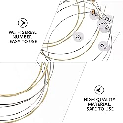 Core Replacement Strings: This harp string set includes 7 steel lyre strings designed for finger harp instruments and lap harp string replacements, providing stable vibration and sustained sound for musical instrument accessories Material Construction: Crafted from imported steel, these harp strings offer wear resistance and solid performance, ensuring long lifespan and consistent sound quality for lyre harp string replacement needs Precision Dimensions: Each string measures approximately 15.74 inches in length and 0.03 inches in diameter, fitting standard seven string lyre instruments and making replacement lyre strings installation straightforward User-Friendly Design: Smooth surface finish minimizes hand discomfort during play and installation, offering a comfortable experience for both beginners and experienced harp players using lyre replacement strings Comprehensive Package: The set includes 7 strings, providing a complete solution for harp lovers needing string replacement and enhancing your musical instrument accessories collection with reliable harp strings