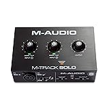 - Introducing the M-Track Solo - Crystal Clear Audio in a Compact DesignStudio Recording, Podcasting and Live Streaming, Simplified.The M-Track Solo is the best featured, most portable class-compliant recording interface in its class. It delivers 48kHz audio resolution in a compact and easy to use format that is ideal for creating music on any Mac or PC. This versatile interface is perfect for recording any type of sound source and features a single combo Crystal Preamp with phantom power, plus a switchable Line / Instrument input making it compatible with any guitar or microphone. Plus, with M-Track Solo's 2-channel recording you can use both line inputs simultaneously to capture digital pianos, drum machines or any other stereo 1/4" device. M-track Solo is completely powered by USB, removing the need for an external power supply and making it perfectly portable for recording on-the-go. Throw it into your bag, grab a laptop, and create your next podcast, song, or mix anywhere you want.Direct Monitoring and Headphone ConnectionM-Track Solo offers zero-latency monitoring of the input signal through both the main RCA outputs and 1/8" headphone outputs. The USB/Direct switch adjusts the balance between the direct inputs and the playback from your computer software. This makes it easy to record new parts or add parts to an existing composition.Start Recording ImmediatelyThe M-Track Solo comes with a complete software package that has everything you need to get started right out of the box - MPC Beats.