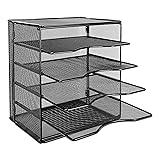 5-tier desktop office trays for storing mail, magazines, documents, personal paperwork, and more Heavy-duty metal mesh construction Stackable design for space-saving convenience Modular trays keep documents easily separated Lightweight and durable for everyday use Dimensions: 13.6 x 9.5 x 12.8 inches