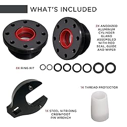 APPLICATION and USE: This hydraulic cylinder seal kit can be used to replace Seastar pivot/front mount steering cylinders outboard powered boats, making this seal kit the perfect tool to repair leaking and weeping cylinder seals. PACKAGE INCLUDES: This steering seal kit comes with 2x cylinder glands (assembled with rod seal, guide and wiper), 1xO-Ring kit, 1x Crowfoot Pin Wrench, 1x Gland Assembly tool. This steel pin can also be used as a 1 inch crowfoot wrench. COMPATIBILITY: HS5157 seal kit is compatible with SeaStar hydraulic steering systems. It fits on front mount cylinder part number HC5340, HC5341, HC5342, HC5343, HC5344, HC5345, HC5346, HC5347, HC5348, HC5358, HC5365, HC5375, HC5394, HC5445, HC6750, HC6751, HC6752, HC6753, HC6754, HC6755. HIGH QUALITY MATERIAL: Carefully manufactured, this hydraulic cylinder seal kit is built with anodized aluminum, selected polymers and rugged black nitriding steel, preventing wear, tear, leaks, and corrosion in marine application. MADE IN NORTH AMERICA These custom hydraulic cylinder seals are produced and assembled in Canada by OEM GENERIC, which delivers high quality products through strict quality assurance standards.
